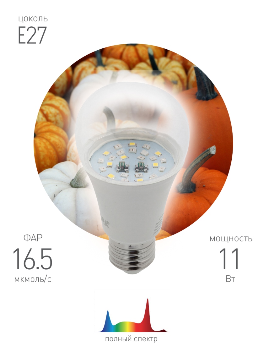 Лампа полного спектра ЭРА FITO-11W-Ra90-E27 предназначена для выращивания любых растений в любой период их роста и развития, но незаменима для растений семейств хризантемовые и тыквенные. Прозрачный плафон из поликарбоната сохраняет свет от светодиодов, в отличие от матовых рассеивателей. Лампа благоприятно воздействует как на фотосинтез, так и на фотоморфогенез. Необходимо отметить, что приятный свет лампы не раздражает людей, находящихся в помещении.Лама ЭРА FITO-11W-Ra90-E27 рейстайлинг лампы FITO-11W-Ra90-E27-К. В данной лампе увеличен фотонный поток за счет снижения температуры светодиодов, подбора более качественных бинов. Суммарная мощность лампы и спектрограмма не изменились.