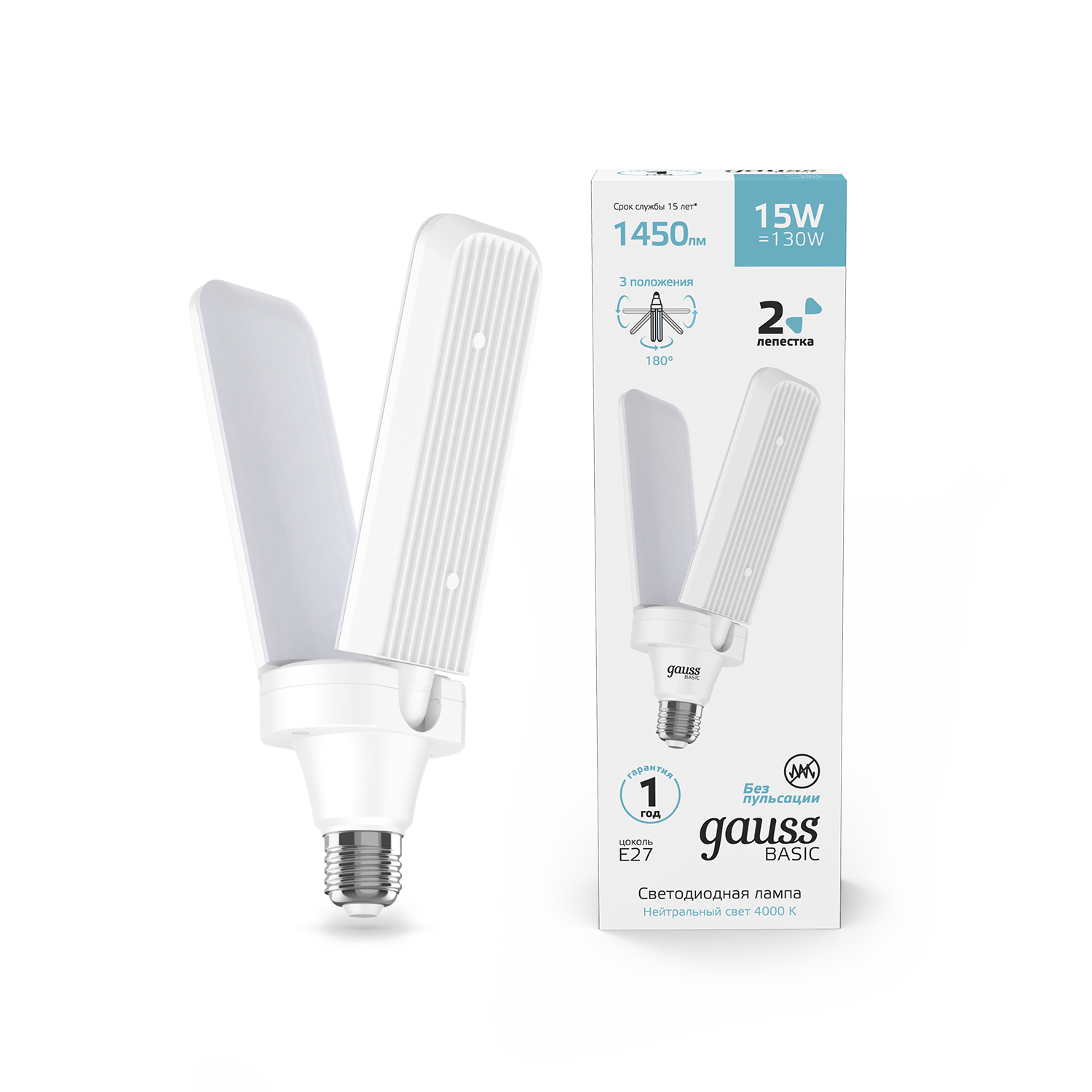Лампа Gauss LED 15W 1450lm 4000K E27 Клевер-2 BASIC