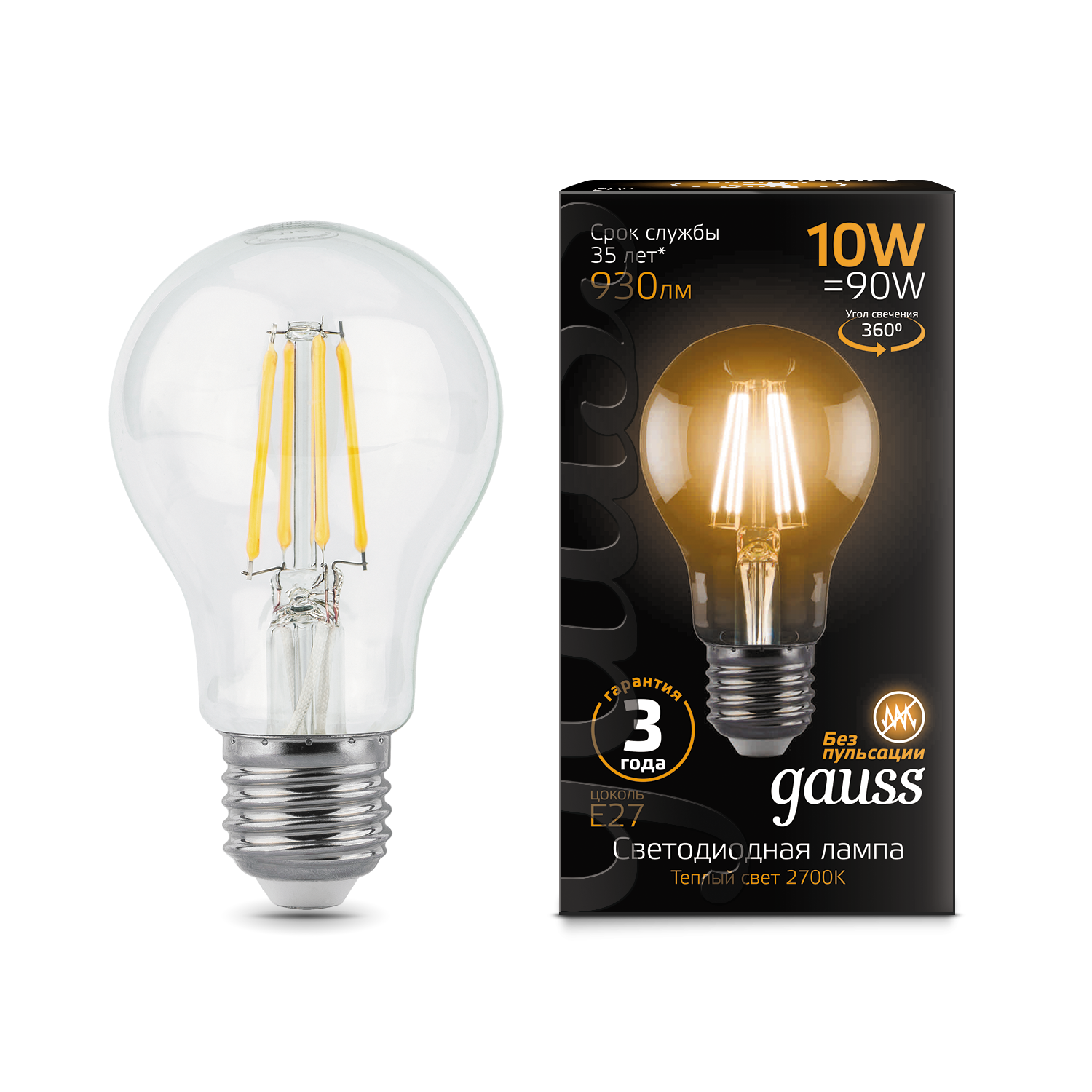 Светодиодные филаментные лампы GAUSS - это новейшие технологии в светотехнике. Лампы имеют привычный вид классических ламп накаливания, освещают пространство на 360о и дают больше света по сравнению с обычными светодиодными лампами за счет прозрачной колбы. Идеально подходят для хрустальных люстр и открытых светильников, а также для реализации дизайнерских решений, где важен вид классических ламп накаливания.