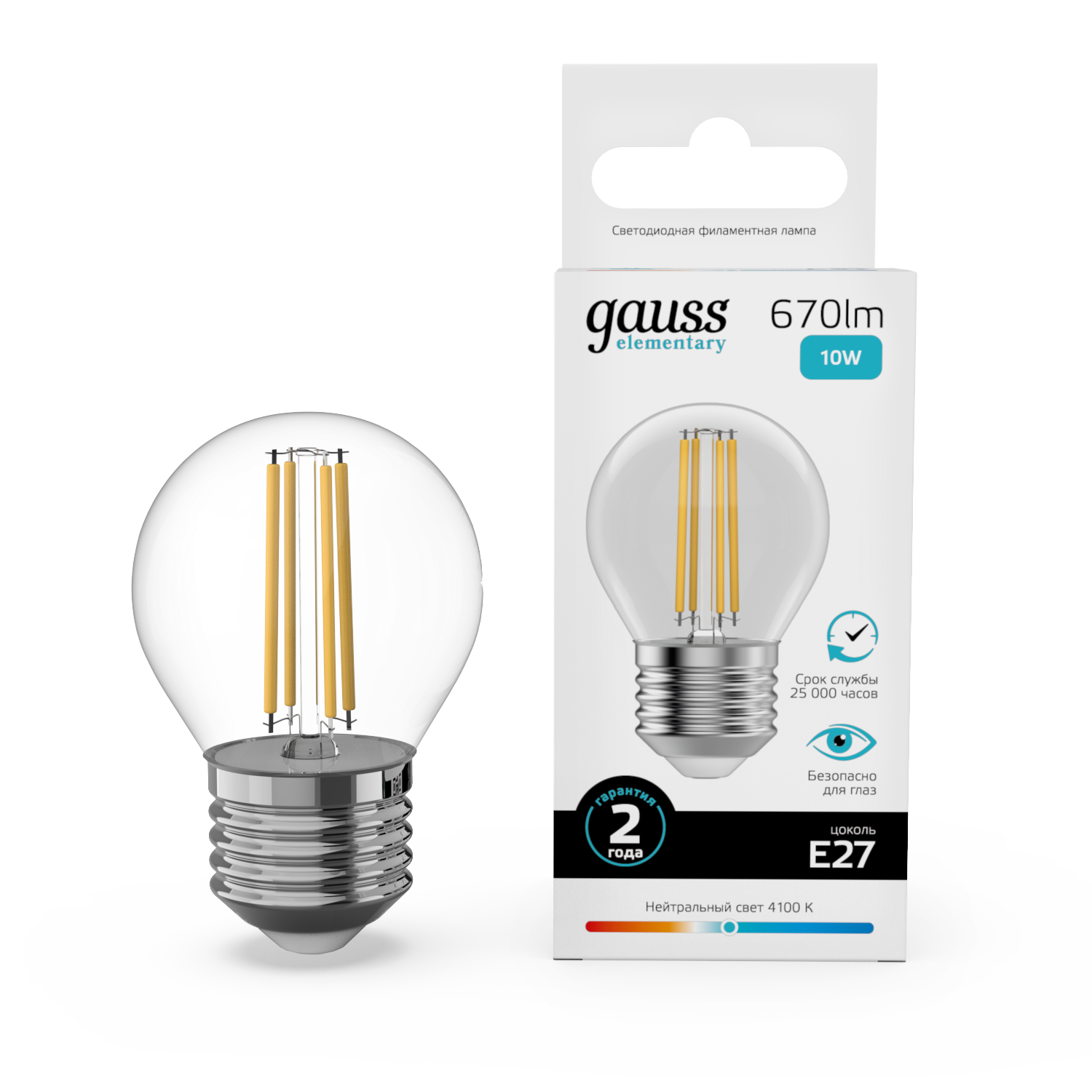 Лампа Gauss LED Filament Elementary Шар 10W E27 670lm 4100К