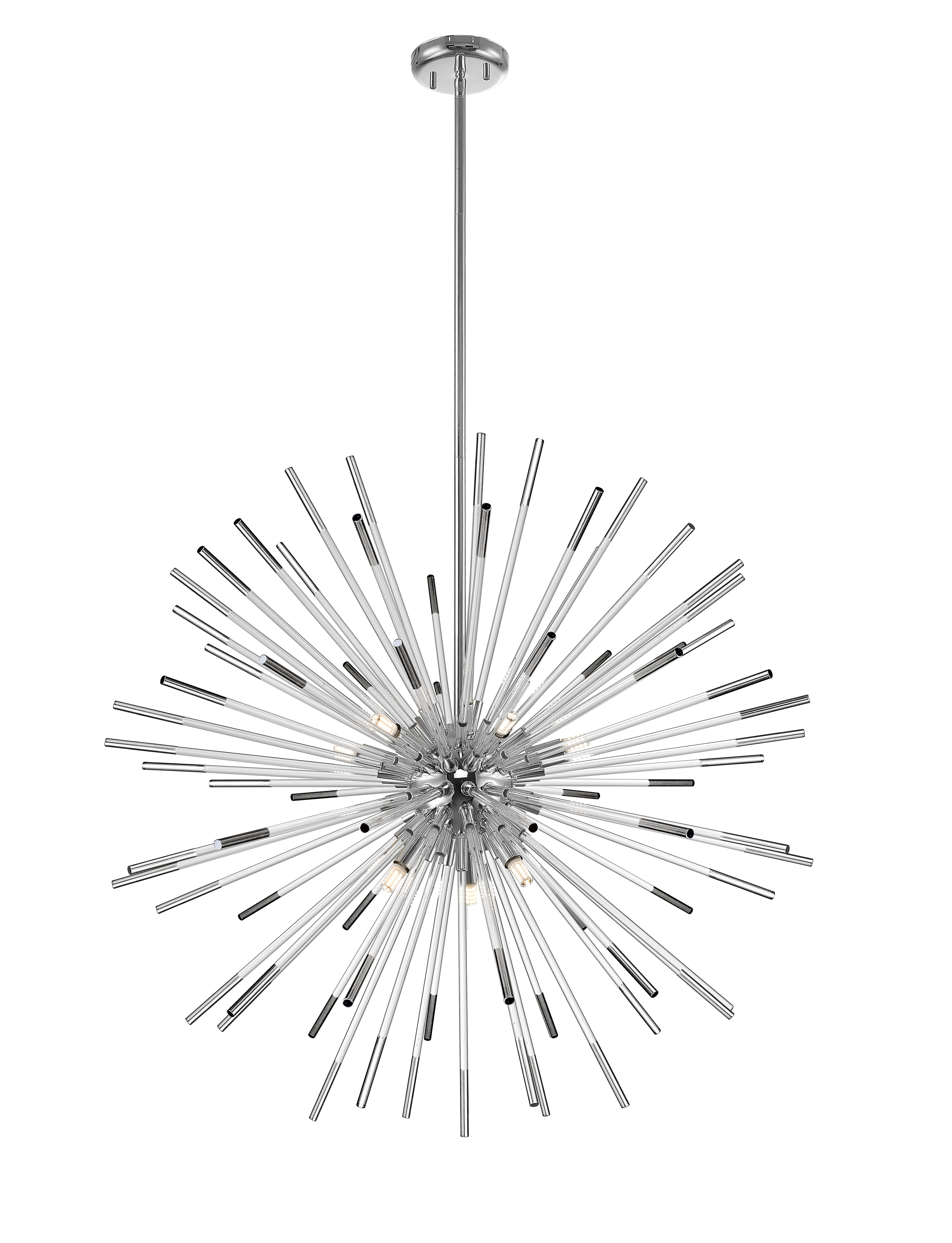 Подвесной светильник из металла цвета хром и стеклянных трубочек с хромовыми наконечниками. D780mm, H830-1600mm, 9хG9