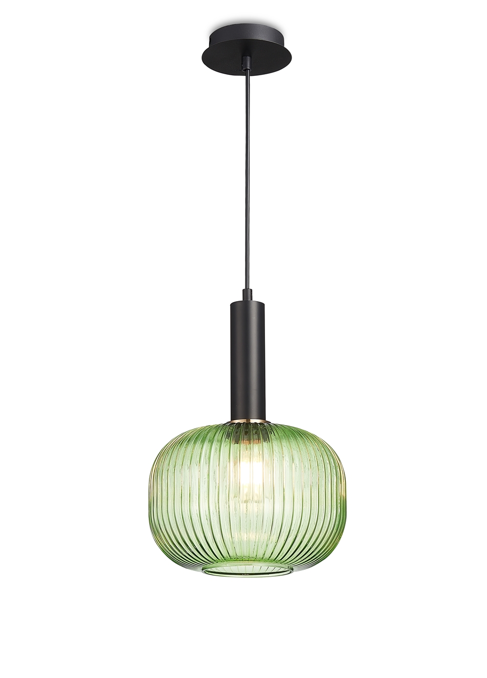 Подвес из металла черного цвета с рифленым стеклянным зеленым плафоном. D250mm, H330-1855mm, 1хE27