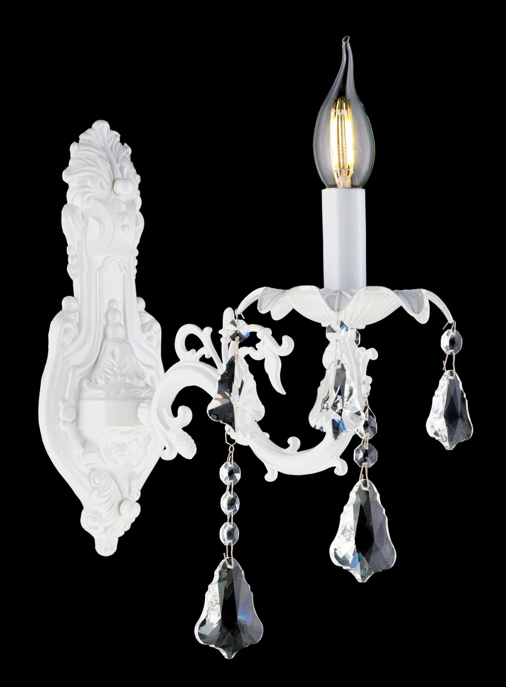 Площадь освещения до 4 м2 Представляем вашему вниманию стильный настенный светильник в элегантном дизайне, который идеально впишется в любой интерьер и станет ярким акцентом в декоре стены. Это элегантное бра выполнено в классическом стиле. Его основание изящно сочетается с хрустальными подвесками, привносящими особую уникальную атмосферу изысканности и роскоши. Этот светильник подходит для установки в различных помещениях, от гостиных до спален, добавляя уют и стиль в любое пространство. Хрустальные подвески при включенном свете создают особую игру бликов и теней, что делает атмосферу ещё более романтичной и теплой. Легкость и изящество этого светильника делает его идеальным выбором для тех, кто ценит гармонию и стиль в каждом элементе интерьера. Установка настенного светильника не требует специальных навыков, а лаконичный дизайн позволяет ему органично вписываться в разнообразные стили оформления, от классики до современного минимализма. Светильник станет не только источником света, но и стильным декора