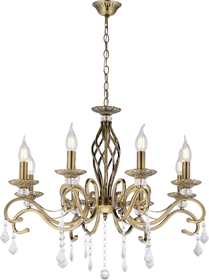 Площадь освещения до 18 м2 Представляем вашему вниманию элегантную люстру в классическом стиле, которая станет великолепным украшением для любого интерьера. Эта подвесная модель создаст уютную атмосферу и поможет освещать пространство с максимальным комфортом. Люстра изготовлена из высококачественных материалов, что гарантирует долговечность и надежность в эксплуатации. Она идеально впишется в разные интерьеры, будь то гостиная, спальня или обеденная зона. Хрустальные элементы добавляют изысканности и утонченности, а классический дизайн делает эту люстру универсальным выбором для разнообразных стилей — от традиционного до современного. Актуально для тех, кто ценит гармонию в декоре, это изделие не только обеспечивает яркое освещение, но и служит стильным акцентом в дизайне вашего помещения. Используйте лампы с цоколем E14, чтобы создать индивидуальное освещение, поскольку такая конструкция позволяет легко менять источники света, подбирая мощность и цвет пространственного освещения в зависимости от ваших пре