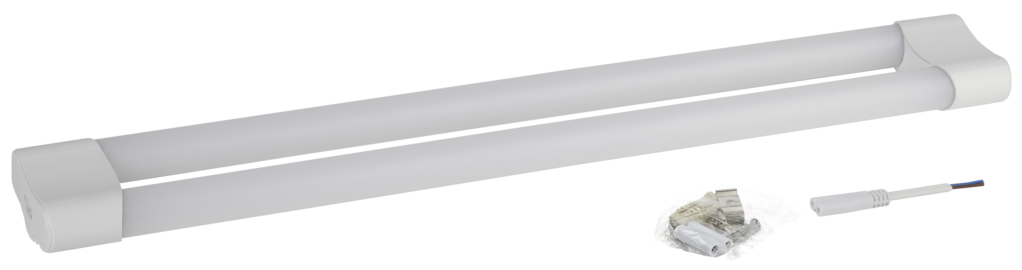 Линейный светодиодный светильник LLED-03 мощностью 9W 230V. В комплекте: светильник, сетевой шнур для подключения к стационарной сети с неармированной вилкой (10 см), комплект крепежных элементов, соединительные элементы для последовательного подключения светильников. Совместим с сетевым шнуром с выключателем LLED-CABLE-1.5m-SW-W (Б0025694).