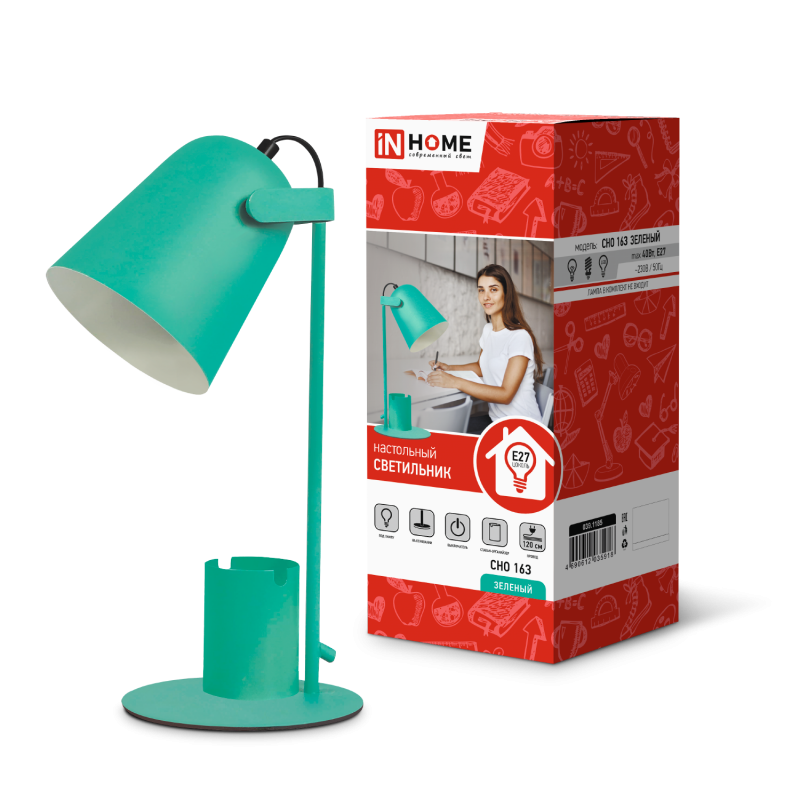 Настольная лампа IN HOME СНО 16З 40Вт E27 230В с органайзером на основании (коробка) зел.