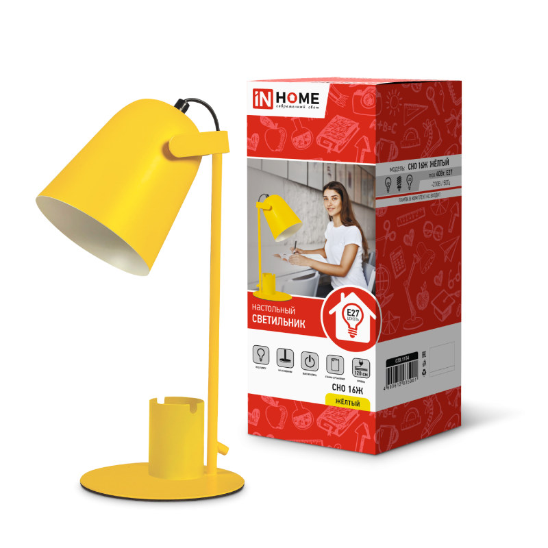 Настольная лампа IN HOME СНО 16Ж 40Вт E27 230В с органайзером на основании (коробка) жел.