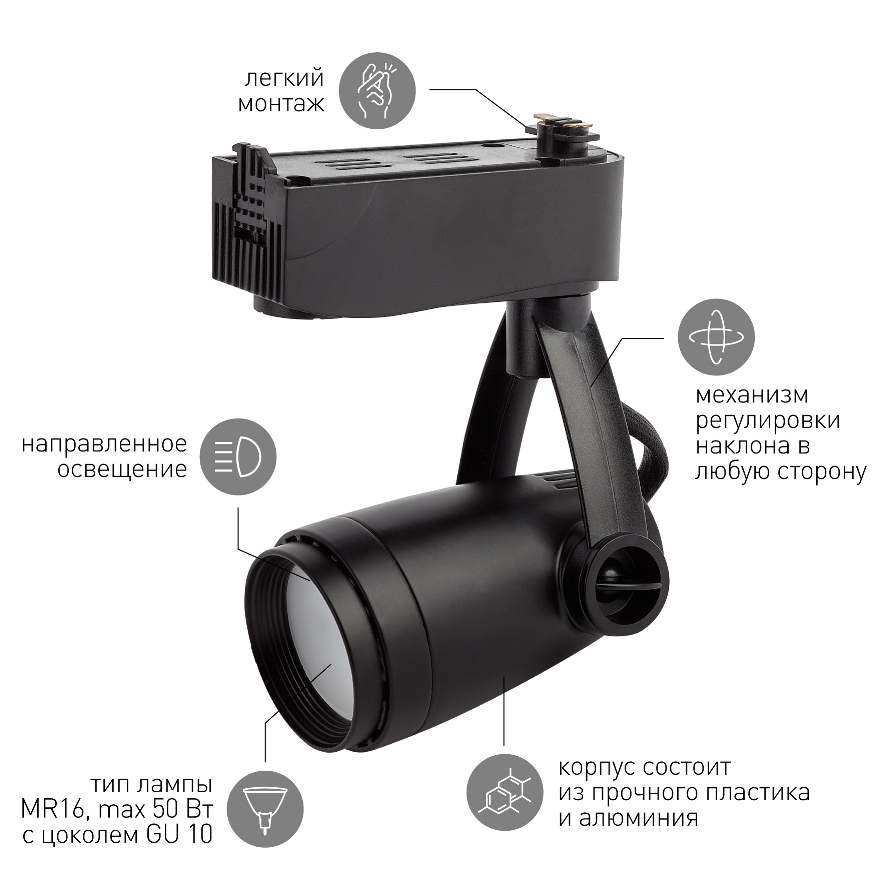Трековый светильник TR12-GU10 лаконичного черного цвета и стильной зауженной формы. Он выделит конкретный объект, создаст стильную подсветку. Подобные светильники имеют особый механизм, который позволяет регулировать угол наклона светильника, изменяя восприятие пространства в целом. Трековые светильники выполняют несколько функций: в магазинах они направляют потенциального покупателя к конкретному товару, в офисах разграничивают пространство. Источником света является лампа с цоколем GU10, что делает светильник максимально универсальным и позволяет подобрать необходимую мощность, цветовую температуру и угол рассеивания. Светильник отлично впишется в любой дизайн, создаст качественные акценты.