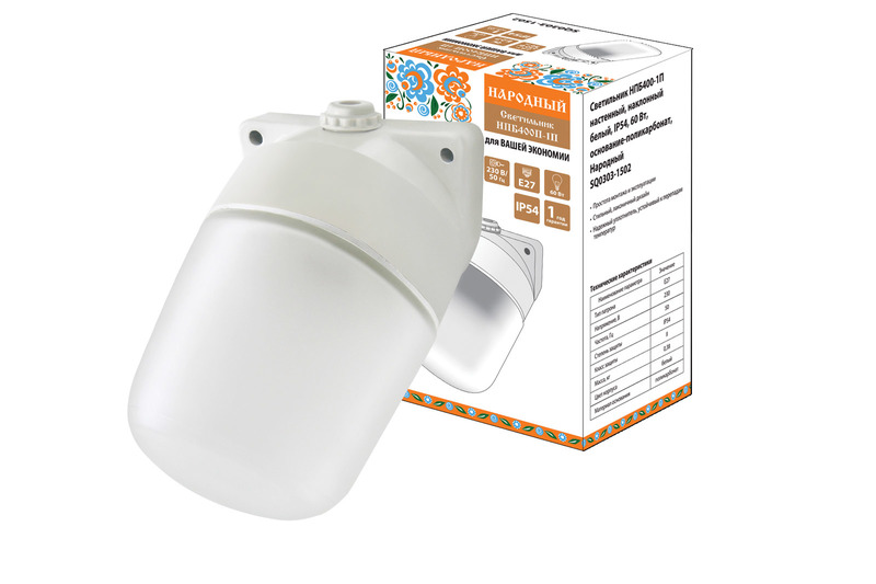 Светильник НПБ 400 IP54 60 Вт для сауны/бани настенный наклонный пластик TDM